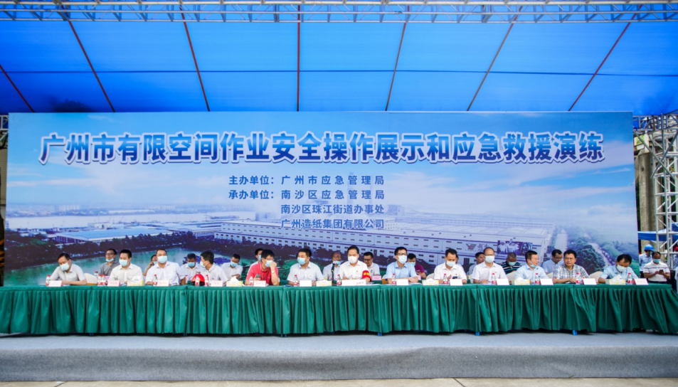 在公司领导的高度重视下,通过新产品分厂、办公室、人力资源部、采购部、生产部、物流管理部、园区发展部等部门的积极配合,广州市有限空间作业安全操作展示和应急救援演练于8月26日在公司成功举办。市应急管理局党委书记、局长黄彪、南沙区常务副区长谢明、pp电子集团副总经理谭思马和公司党委书记、董事长周耘出席了本次活动,各区应急管理局和珠江街主要负责人、市有限空间作业重点企业代表、pp电子集团安监部和各板块安全责任人及公司AB类部门共160余人现场观摩演练。